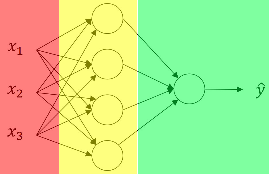 其中,红色覆盖的是【输入层】,黄色覆盖的是【隐含层】,绿色覆盖的是【输出层】。